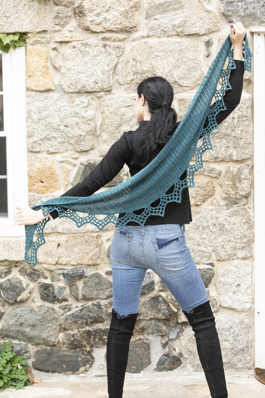 At the time I was developing this shawl, I was reminded of the phrase “points of light” as a description of volunteers and the help – the “light” – they bring to communities. I wanted this shawl to emphasize that positive part of the world around us.